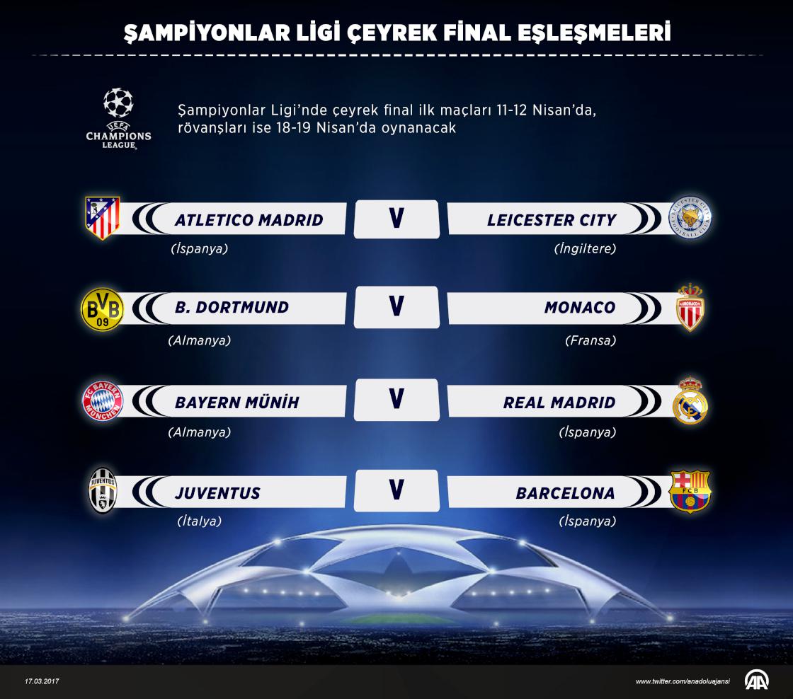 Avrupa futbolunun bir numaralı organizasyonu UEFA Şampiyonlar Ligi'nde çeyrek final kura çekimi yapıldı.