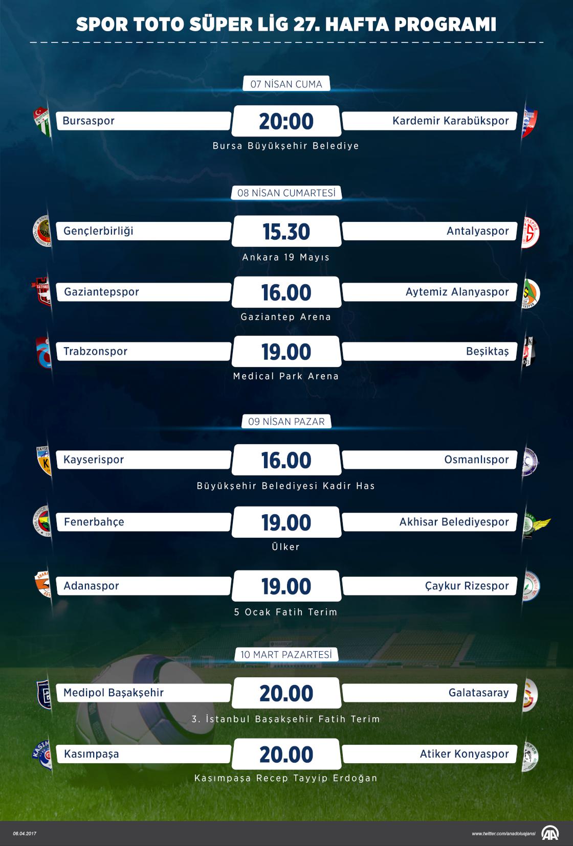 Spor Toto Süper Lig 27. Hafta Programı