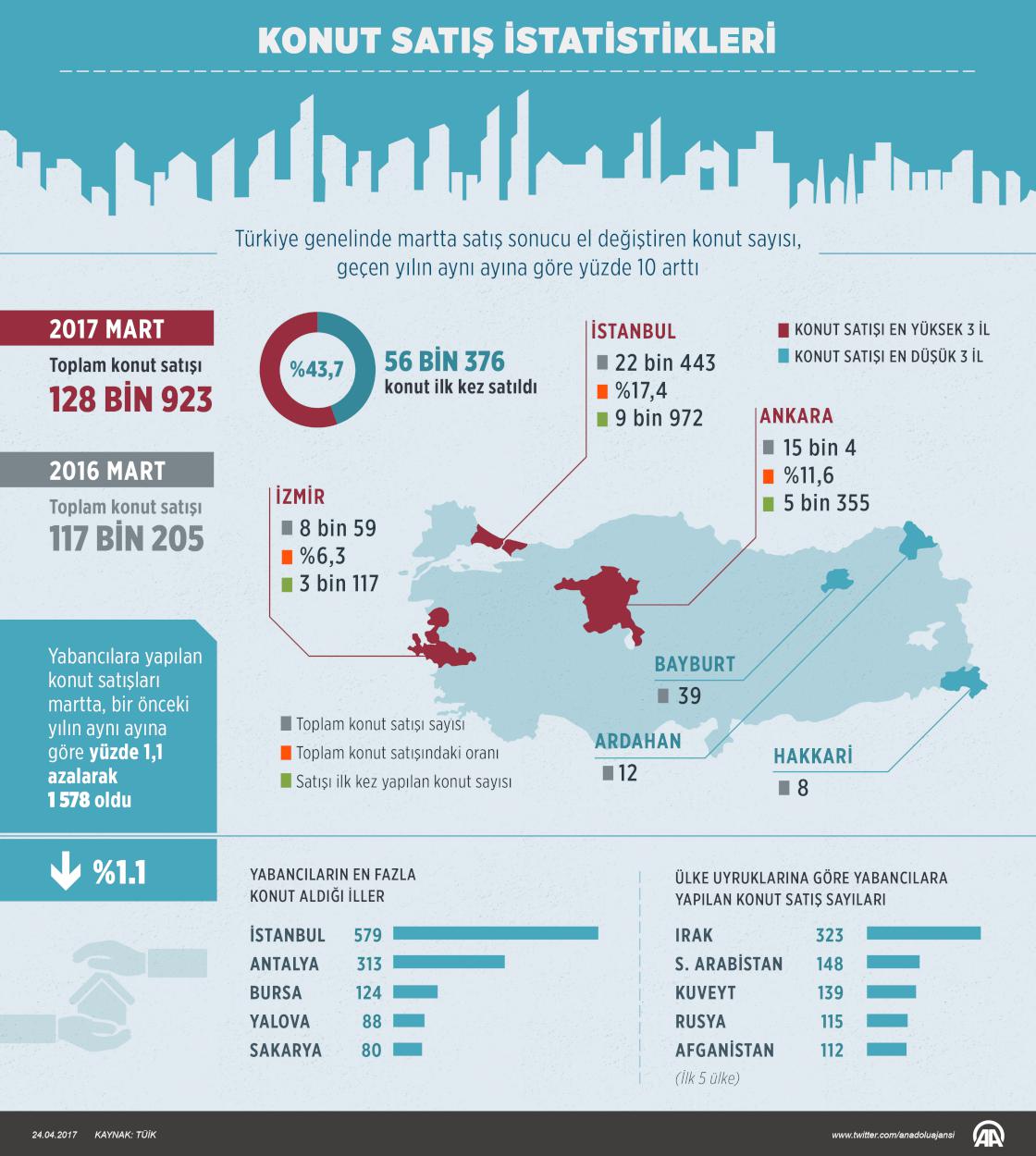 Türkiye genelinde martta 128 bin 923 konut satıldı. Geçen ay satılan konut sayısı, bir önceki aya göre yüzde 27, geçen yılın aynı ayına göre ise yüzde 10 artış kaydetti. ( Murat Usubaliev - Anadolu Ajansı )