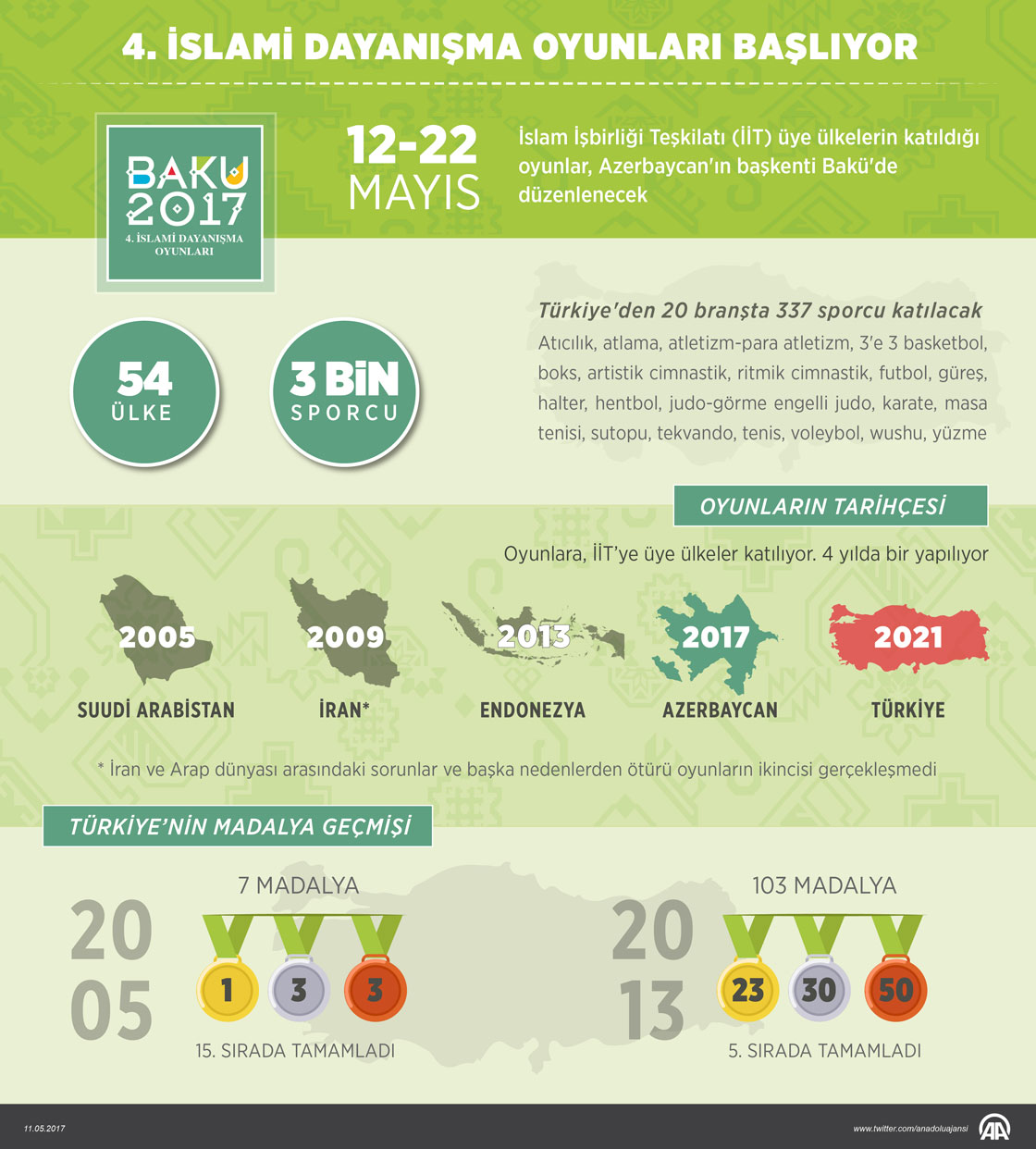 İslam İşbirliği Teşkilatı (İİT) üye ülkelerin katıldığı oyunlar, Azerbaycan'ın başkenti Bakü'de düzenlenecek