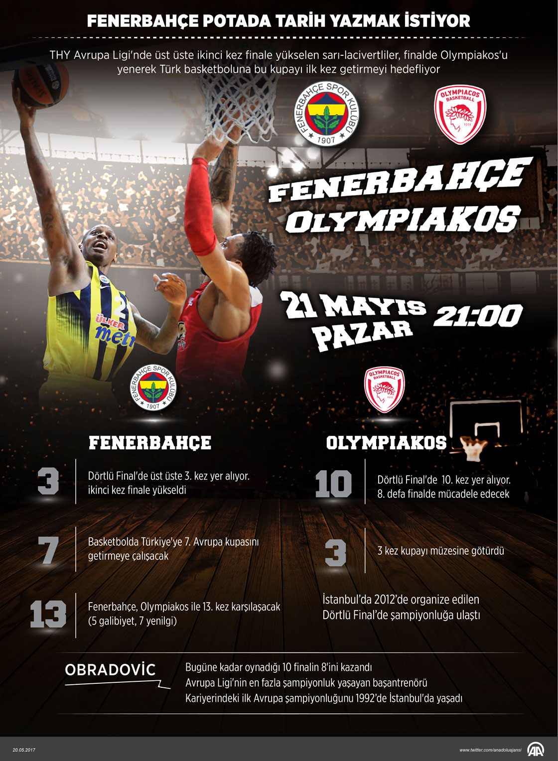 THY Avrupa Ligi'nde üst üste ikinci kez finale yükselen sarı-lacivertliler, yarın finalde Olympiakos'u yenerek Türk basketboluna bu kupayı ilk kez getirmeyi hedefliyor. ( Gözde Gültekinler - Anadolu Ajansı )