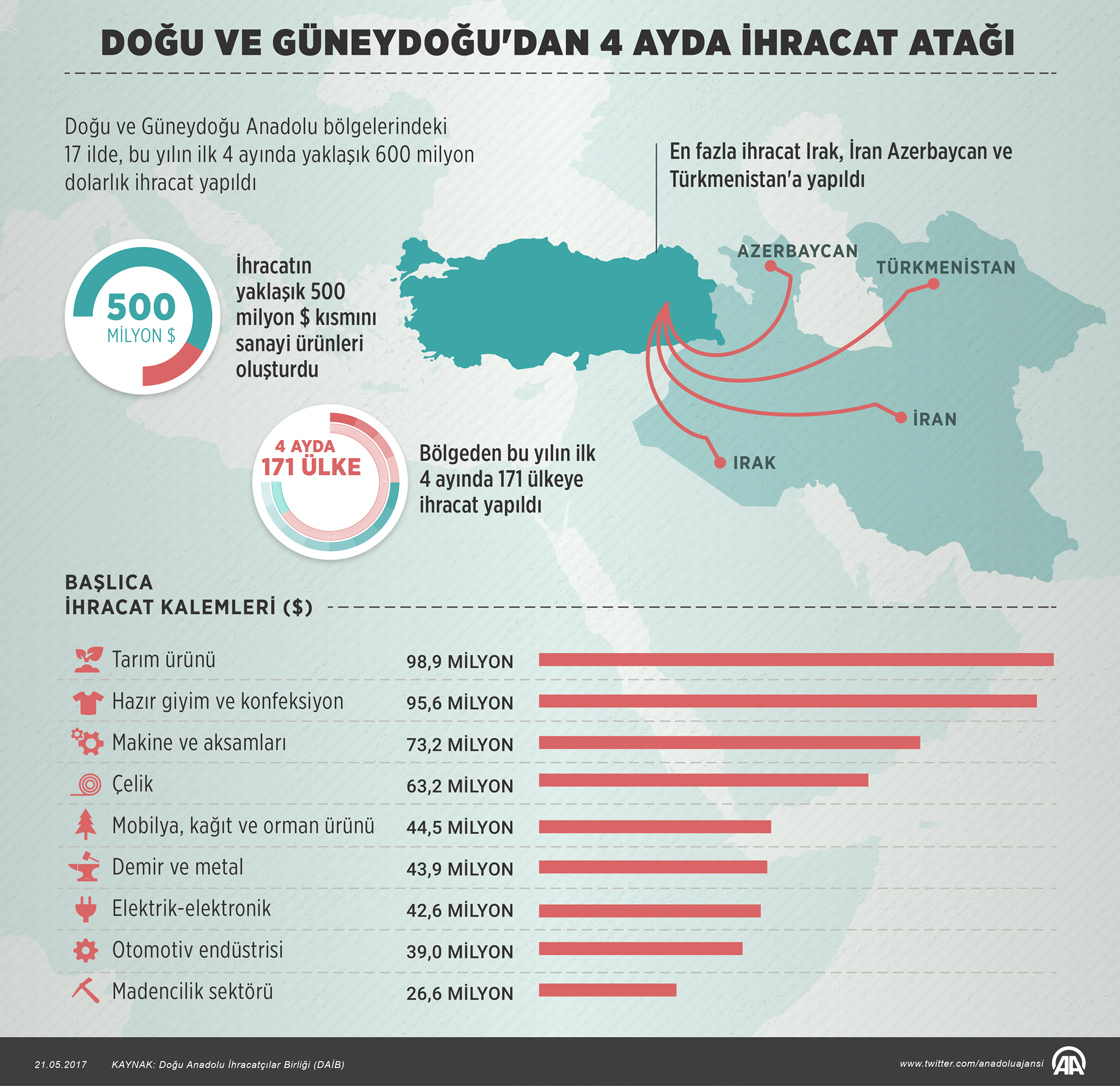 Doğu Anadolu İhracatçılar Birliğinin sorumluluk alanındaki 17 ilde, ocak-nisan döneminde 600 milyon dolarlık ihracat yapıldı. ( Murat Usubaliev - Anadolu Ajansı )