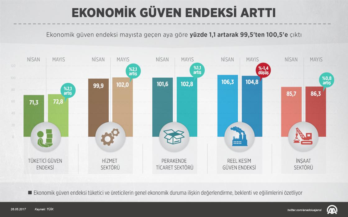 Ekonomik güven endeksi mayısta geçen aya göre yüzde 1,1 artarak 99,5'ten 100,5'e çıktı. ( Yasin Demirci - Anadolu Ajansı )