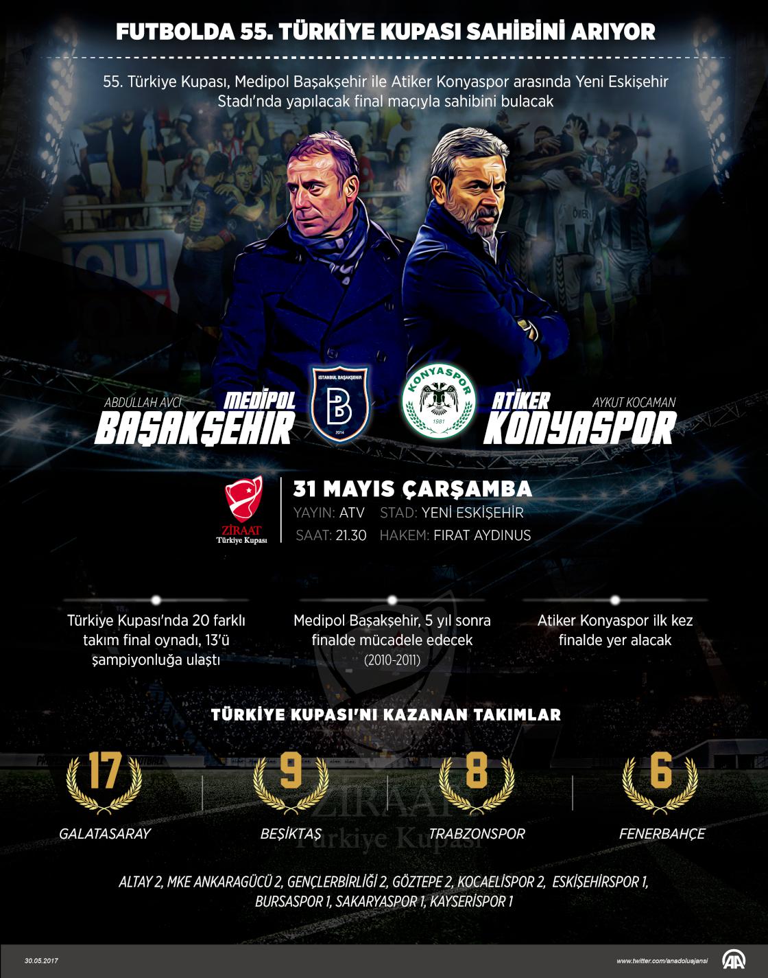 Futbolda Ziraat Bankasının sponsorluğunda düzenlenen 55. Türkiye Kupası, Medipol Başakşehir ile Atiker Konyaspor arasında yarın Yeni Eskişehir Stadı'nda yapılacak final maçıyla sahibini bulacak. ( Kemal Delikmen - Anadolu Ajansı )