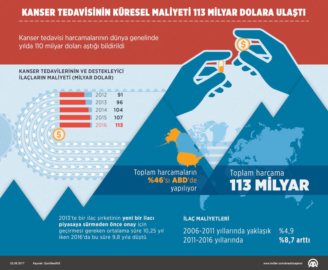 Kanser tedavisi harcamalarının dünya genelinde yılda 110 milyar doları aştığı bildirildi. ( Murat Usubaliev - Anadolu Ajansı )