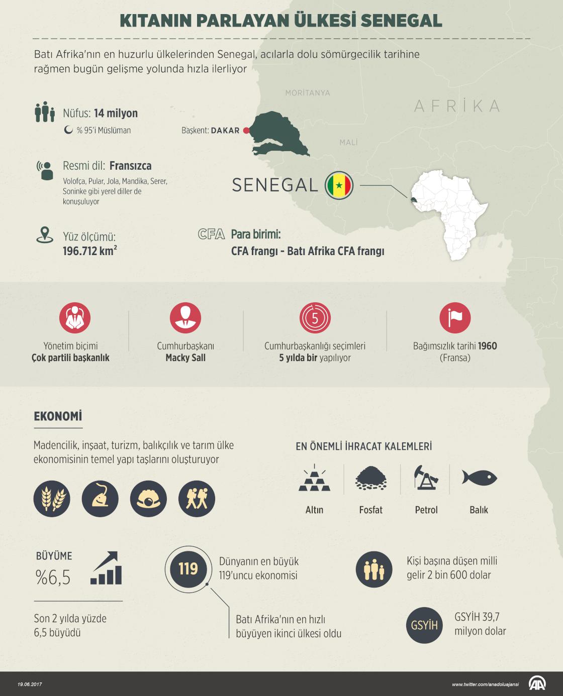 Senegal'in başkenti Dakar, art arda yükselen inşaatlar ve yatırımlarla göz doldursa da şehrin hala bazı bölümlerinde tahmini güç bir sefalet yaşanıyor. Batı Afrika'da Moritanya, Gine, Gine Bissau, Mali ve Gambiya'ya komşu Senegal, yaklaşık 14 milyonluk nüfusa ev sahipliği yapıyor. Ülkede, nüfusun yüzde 95'i Müslümanlardan oluşurken Hristiyan ve diğer dinlere mensup azınlıklar bir arada huzur içinde yaşıyor. Resmi dilin Fransızca olduğu ülkede başta Volofça olmak üzere birçok yerel dil kullanılıyor. Madencilik, inşaat, turizm, balıkçılık ve tarım, ülke ekonomisinin temel yapı taşlarını oluşturuyor. Ülkenin ana ihraç kalemleri arasında altın, fosfat, işlenmiş petrol ve balık yer alırken ana ithalat maddeleri arasında ise ham petrol, pirinç, buğday, binek araç ve çeşitli ilaçlar bulunuyor.