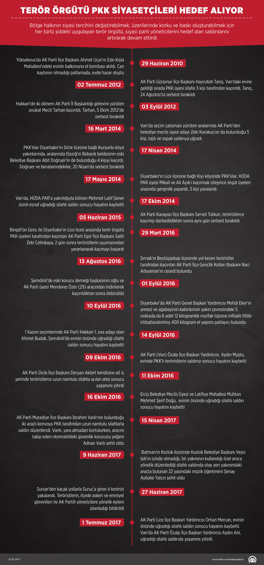 Doğu ve Güneydoğu Anadolu'daki başarılı operasyonlarla ağır darbe vurulan terör örgütü PKK, bölge halkı üzerinde baskı kurmak ve varlığını koruyabilmek amacıyla siyasetçileri hedef almayı sürdürüyor.
