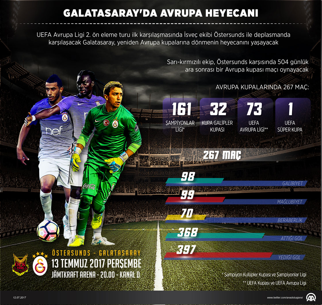 UEFA Avrupa Ligi 2. ön eleme turu ilk maçında yarın İsveç ekibi Östersunds'a konuk olacak Galatasaray, Avrupa hasretine son verecek.