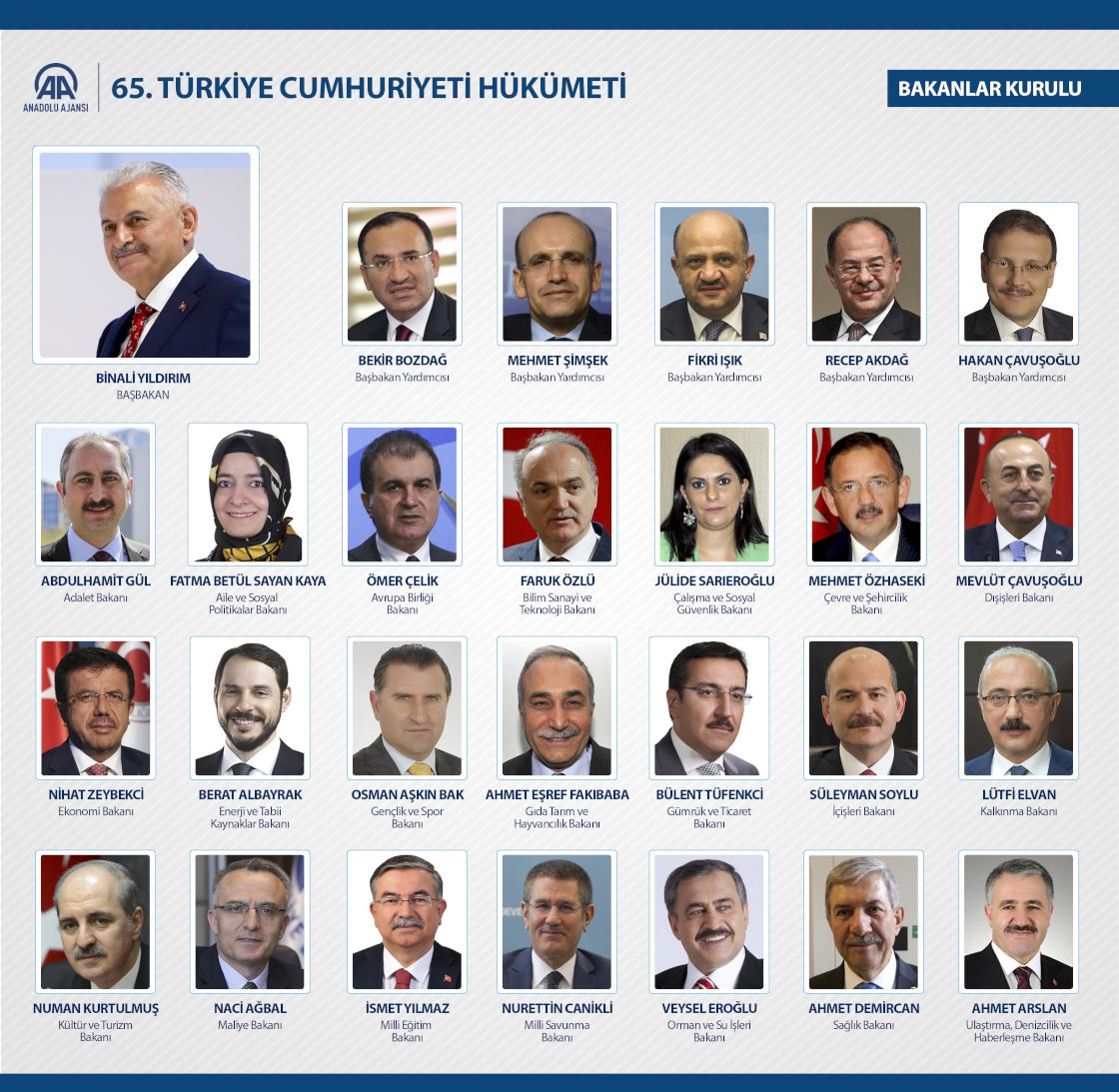 Başbakan Binali Yıldırım, 65. Hükümette yapılan değişiklikleri açıkladı.