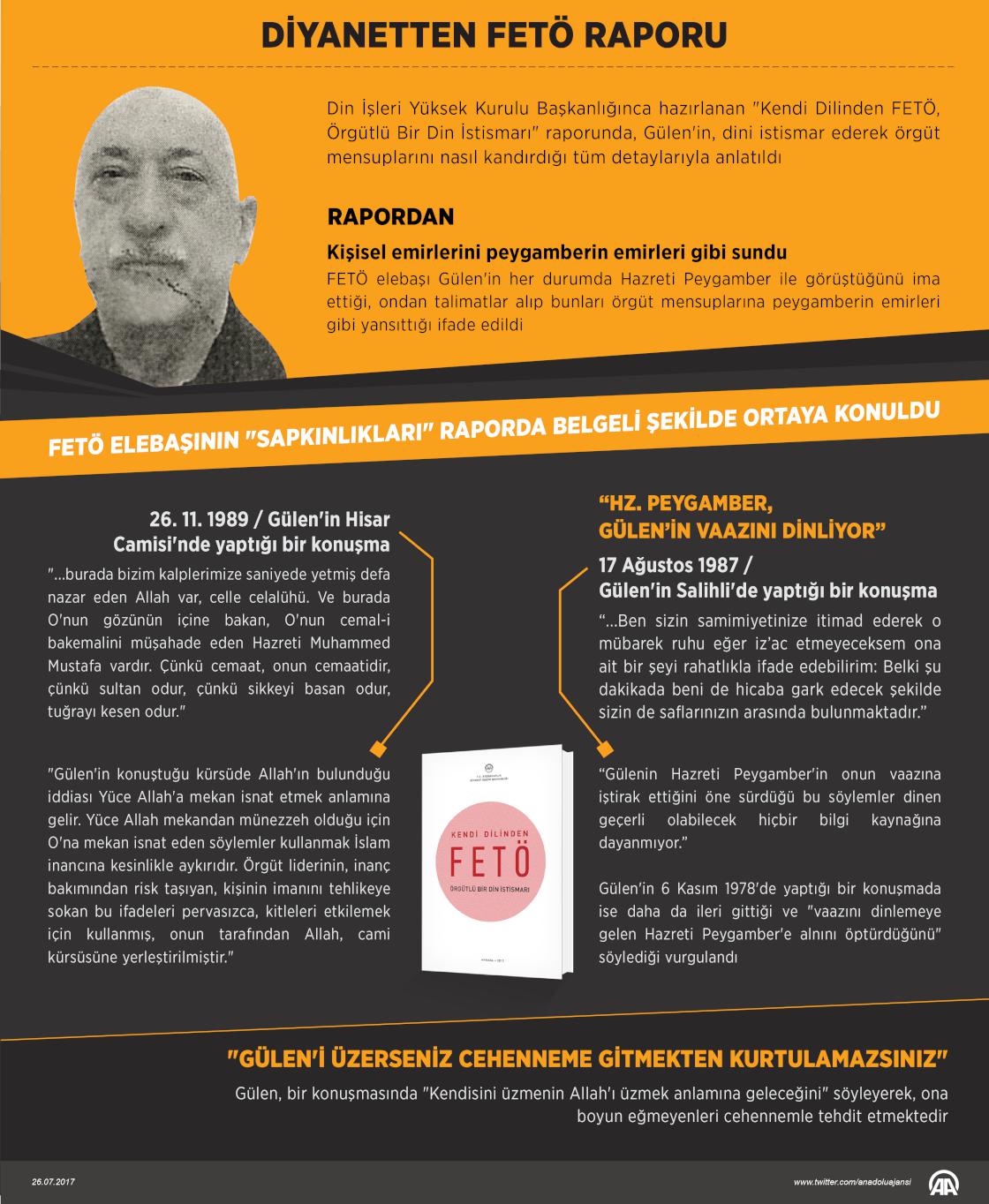 Din İşleri Yüksek Kurulu Başkanlığınca hazırlanan "Kendi Dilinden FETÖ, Örgütlü Bir Din İstismarı" raporunda, Gülen'in, dini istismar ederek örgüt mensuplarını nasıl kandırdığı tüm detaylarıyla anlatıldı. ( Yasin Demirci - Anadolu Ajansı )