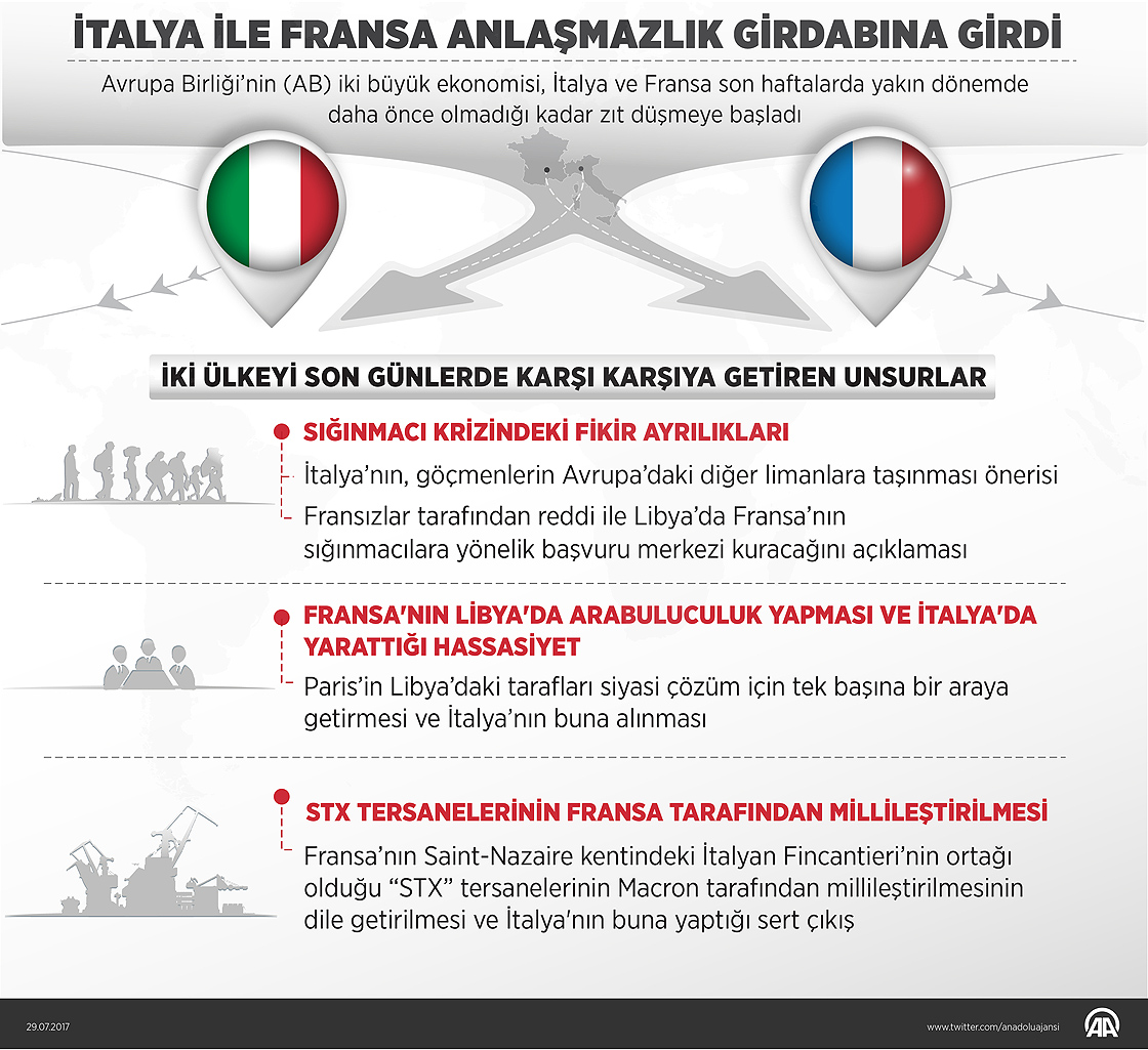 AB'nin büyük üyelerinden İtalya ve Fransa arasındaki anlaşmazlıklar son haftalarda gün yüzüne çıkmaya başladı.