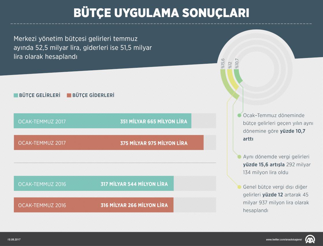 Merkezi yönetim bütçesi gelirleri temmuz ayında 52,5 milyar lira, giderleri ise 51,5 milyar lira olarak hesaplandı. ( Yasin Demirci - Anadolu Ajansı )