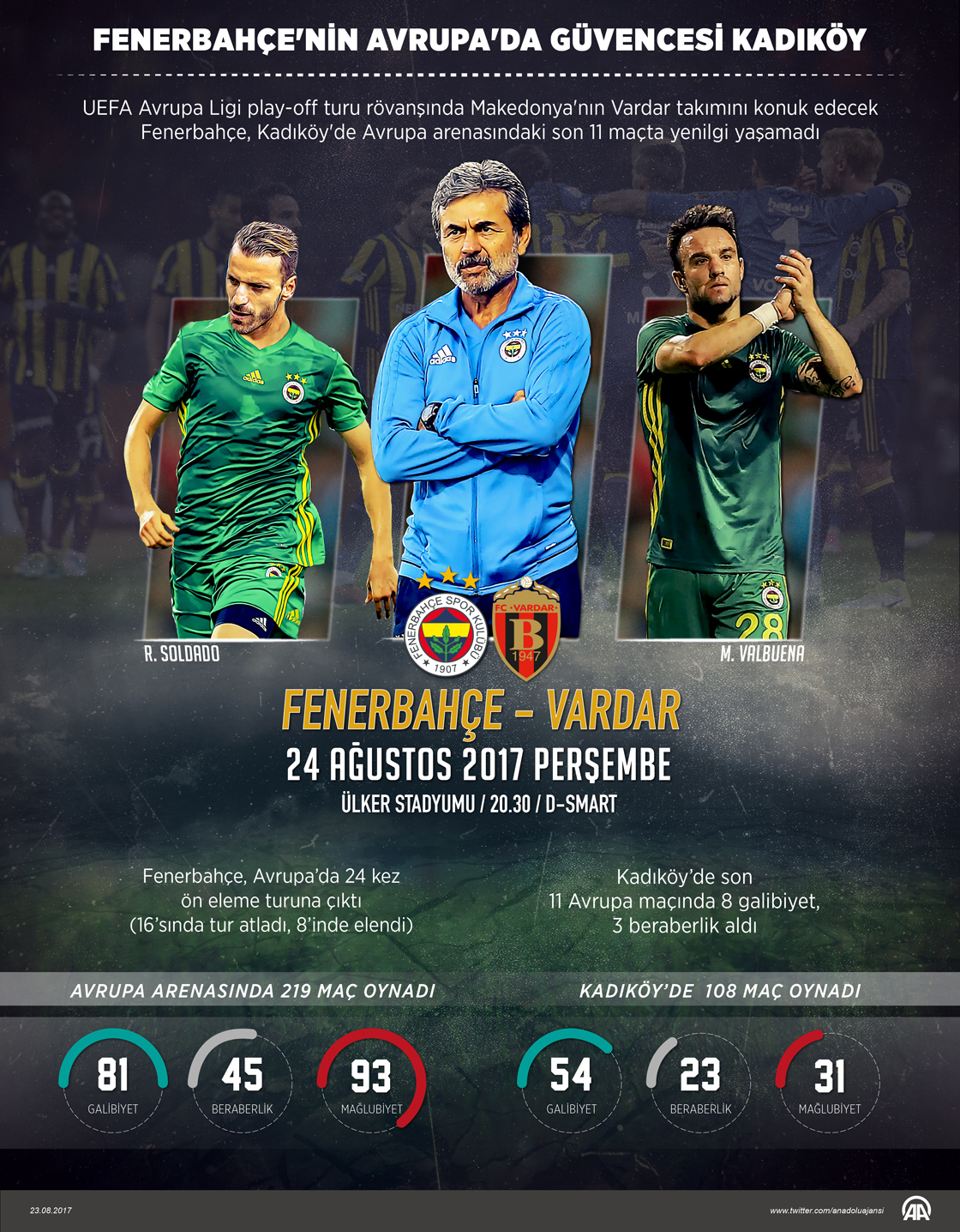 UEFA Avrupa Ligi play-off turu rövanşında yarın Makedonya'nın Vardar takımını konuk edecek Fenerbahçe, Kadıköy'de, Avrupa kupalarındaki son 11 maçta yenilgi görmedi.