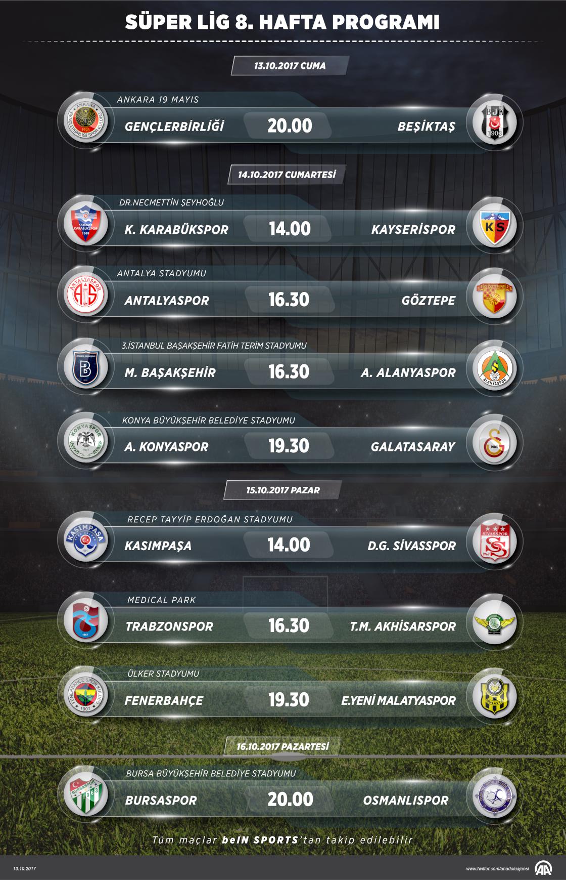 Süper Lig'de 8. haftanın açılış maçında bugün (13 Ekim 2017 Cuma) Gençlerbirliği ile Beşiktaş karşı karşıya gelecek. Ligde 14 Ekim Cumartesi 4, 15 Ekim Pazar günü 3 ve 16 Ekim Pazartesi tek maç oynanacak. ( Kemal Delikmen - Anadolu Ajansı )