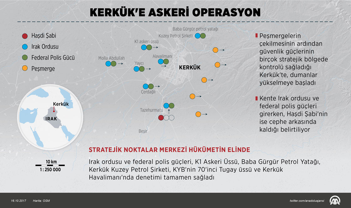 Peşmergelerin çekilmesinin ardından Irak güvenlik güçlerinin birçok stratejik bölgede kontrolü sağladığı Kerkük'te, dumanlar yükselmeye başladı.