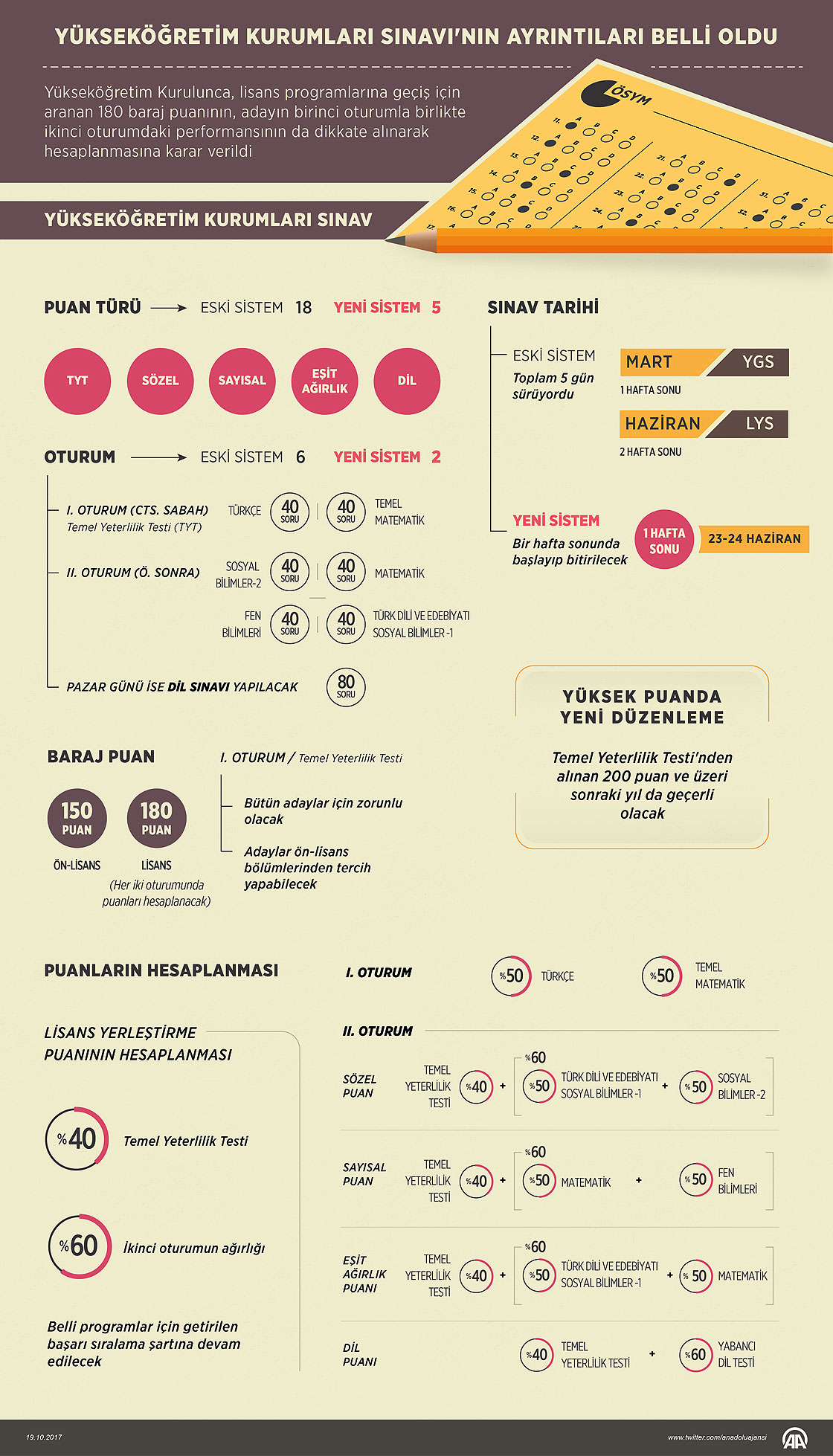 Yükseköğretim Kurumları Sınavı'nın ikinci oturumunda adaylara Türk Dili ve Edebiyatı-Sosyal Bilimler-1 Testinde 40, Sosyal Bilimler-2 Testinde 40, Matematik Testinde 40 ve Fen Bilimleri Testinde 40 olmak üzere toplam 160 soru sorulacağı bildirildi.