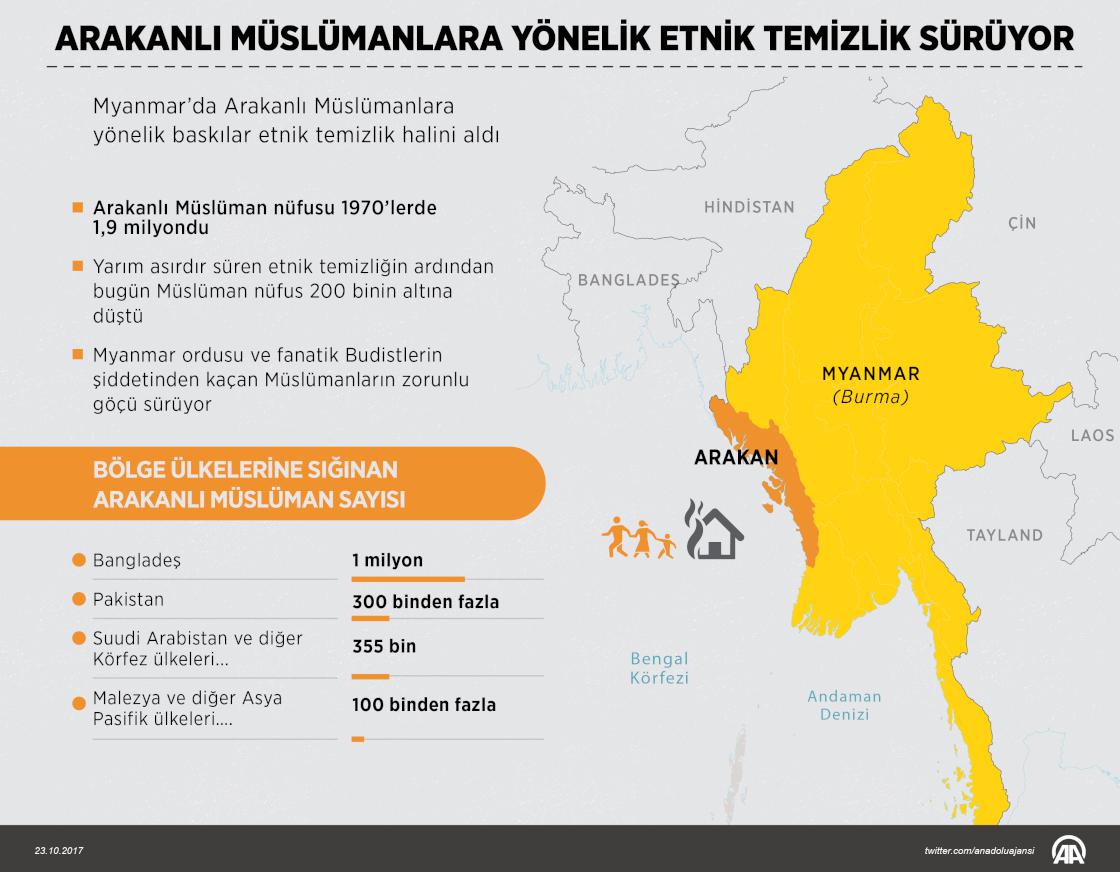 Mynamar'da Arakan eyalettinde 1970'lerden bu yana Rohingya Müslümanlarını hedef alan etnik temizlik ve şiddet eylemleri nedeniyle eyaletteki Müslüman nüfusunun büyük bölümü göçe zorlandı. ( Gözde Gültekinler - Anadolu Ajansı )