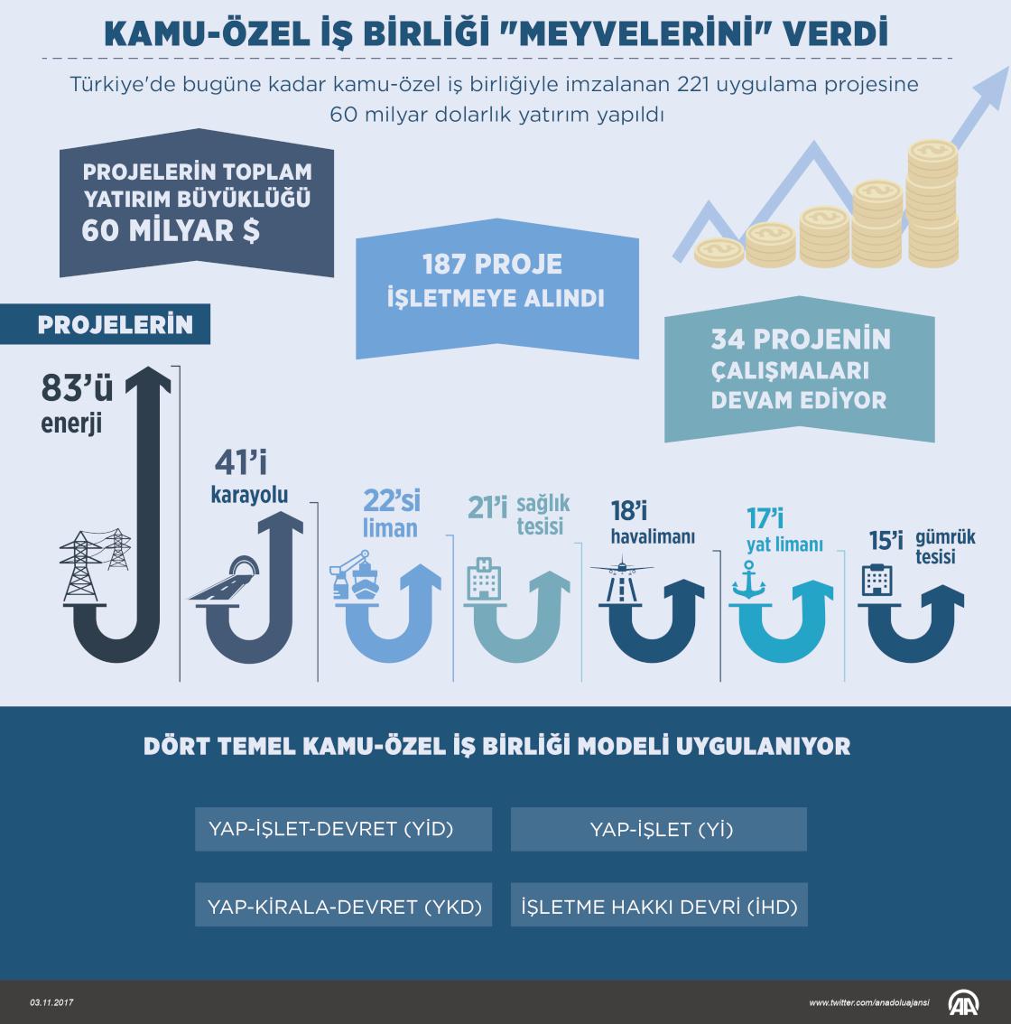 Türkiye'de bugüne kadar kamu-özel iş birliğiyle yatırım tutarı 60 milyar doları bulan 221 proje imzalandı. ( Gözde Gültekinler - Anadolu Ajansı )