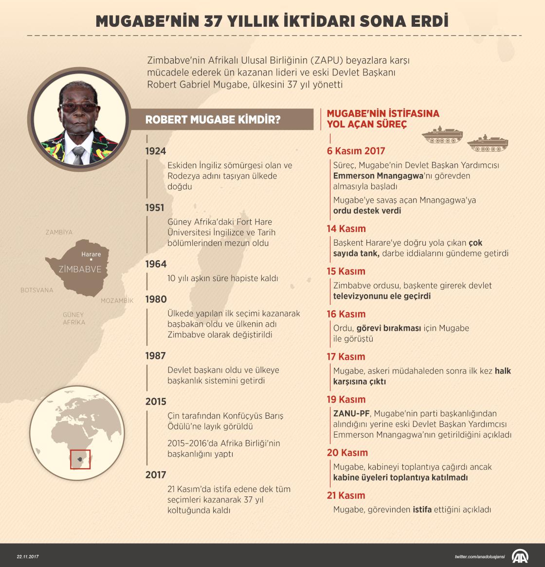 Zimbabve'nin Afrikalı Ulusal Birliğinin (ZAPU) beyazlara karşı mücadele ederek ün kazanan lideri ve eski Devlet Başkanı Robert Gabriel Mugabe, ülkesini 37 yıl yönetti. ( Murat Usubaliev - Anadolu Ajansı )