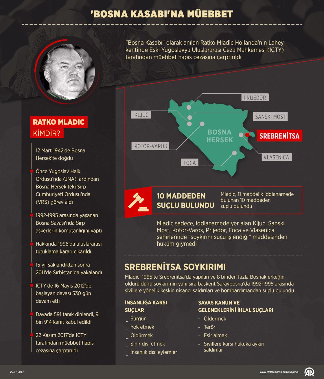 "Bosna Kasabı" olarak anılan Ratko Mladic Hollanda'nın Lahey kentinde Eski Yugoslavya Uluslararası Ceza Mahkemesi (ICTY) tarafından müebbet hapis cezasına çarptırıldı. ( Murat Usubaliev - Anadolu Ajansı )