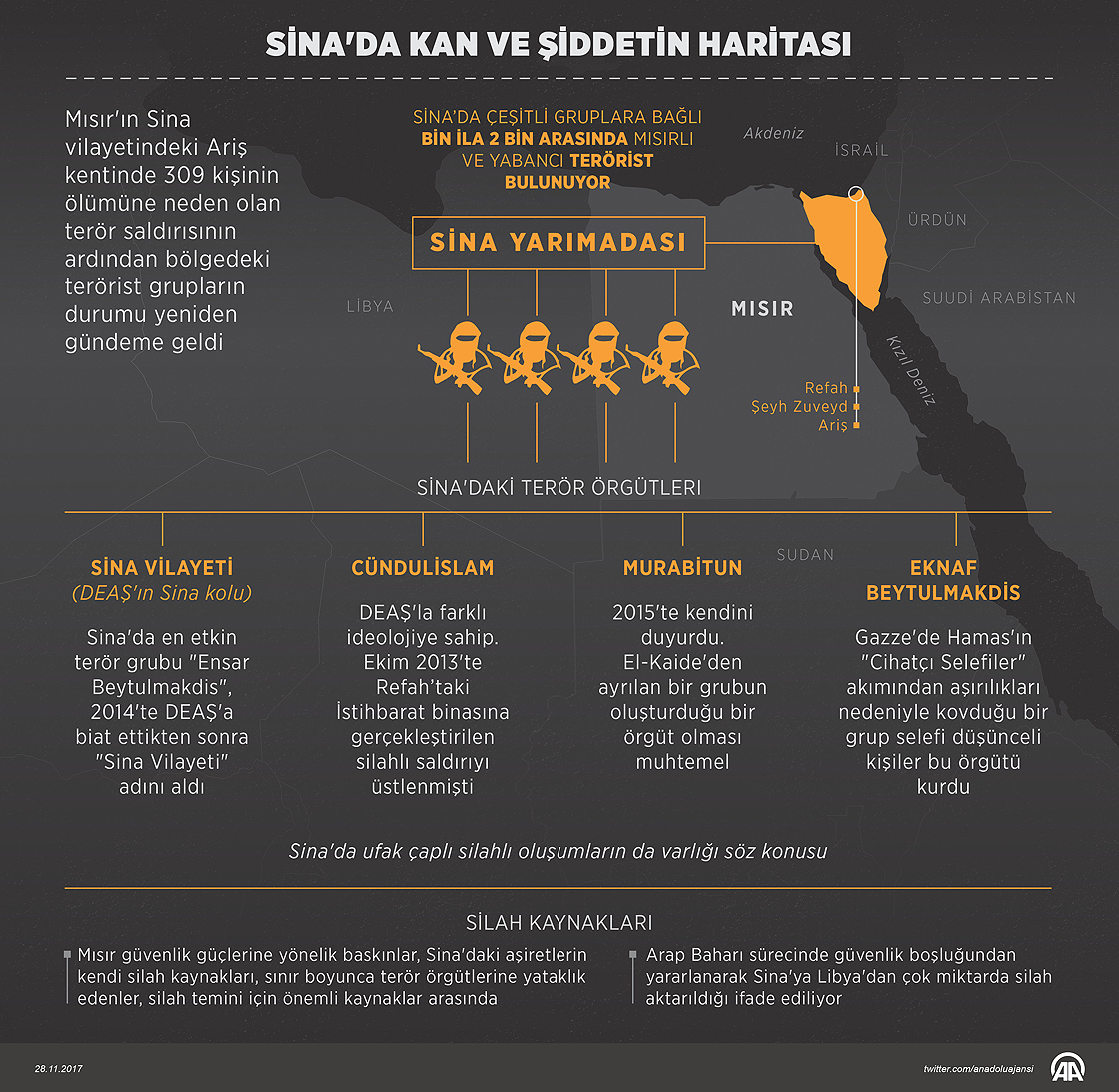 Mısır'ın Sina vilayetindeki Ariş kentinde 309 kişinin ölümüne neden olan saldırının ardından uzmanlar bölgedeki terör gruplarının durumunu değerlendirmeye başladı. (Murat Usubaliev - Anadolu Ajansı)