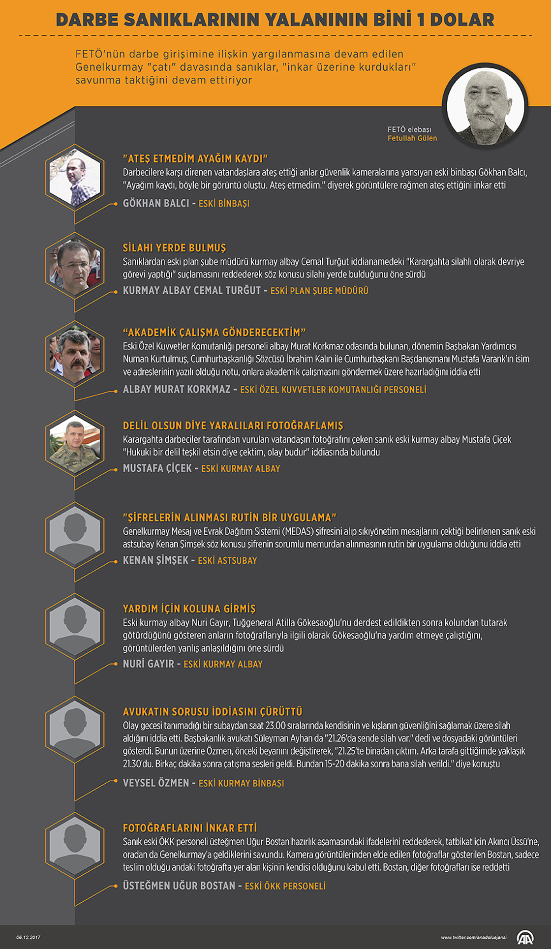 FETÖ'nün darbe girişimine ilişkin yargılanmasına devam edilen Genelkurmay "çatı" davasında sanıklar, "inkar üzerine kurdukları" savunma taktiğini devam ettiriyor.