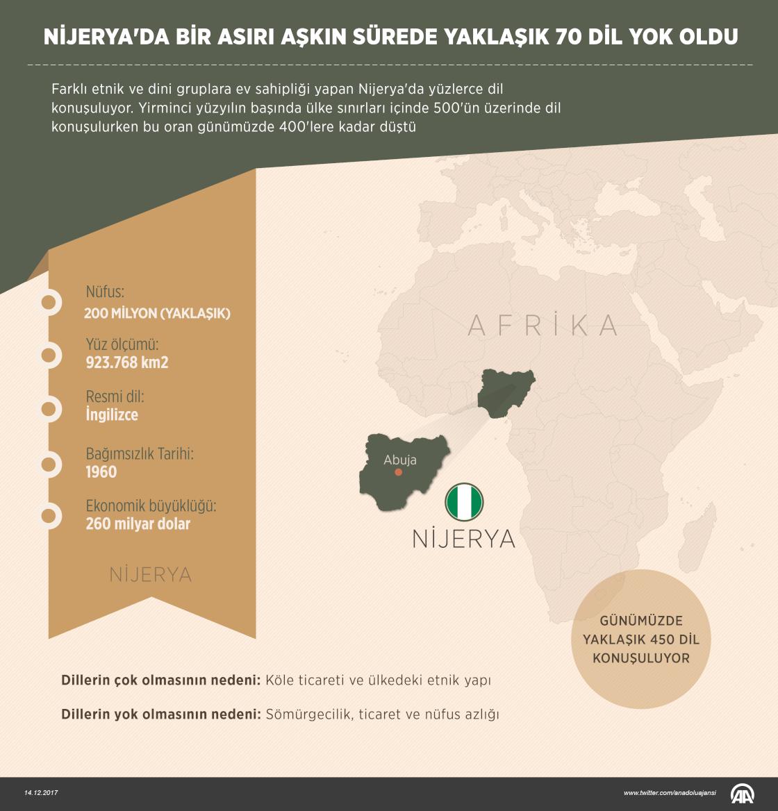 Farklı etnik ve dini gruplara ev sahipliği yapan Nijerya'da 1900'lerin başında yaklaşık 520 dil konuşulurken, günümüzde bu sayı yaklaşık 450'ye geriledi. Afrika'da dil üzerine araştırma yapan akademisyenlere göre, yerel dillerin yok olmasının ana nedenleri arasında sömürge geçmişi, ticaretin belli diller etrafında yapılması ve yerel dilleri konuşan nüfusun azalması yer alıyor.