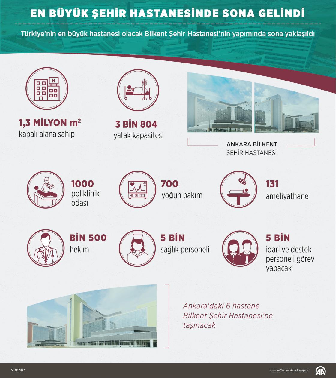 Türkiye'nin en büyük sağlık kampüsü niteliğindeki Bilkent Şehir Hastanesi, açılış için gün sayıyor. Ankara'daki 6 hastanenin taşınacağı, 3 bin 804 yatak kapasiteli kampüste bin 500 hekim görev yapacak. ( Gözde Gültekinler - Anadolu Ajansı )