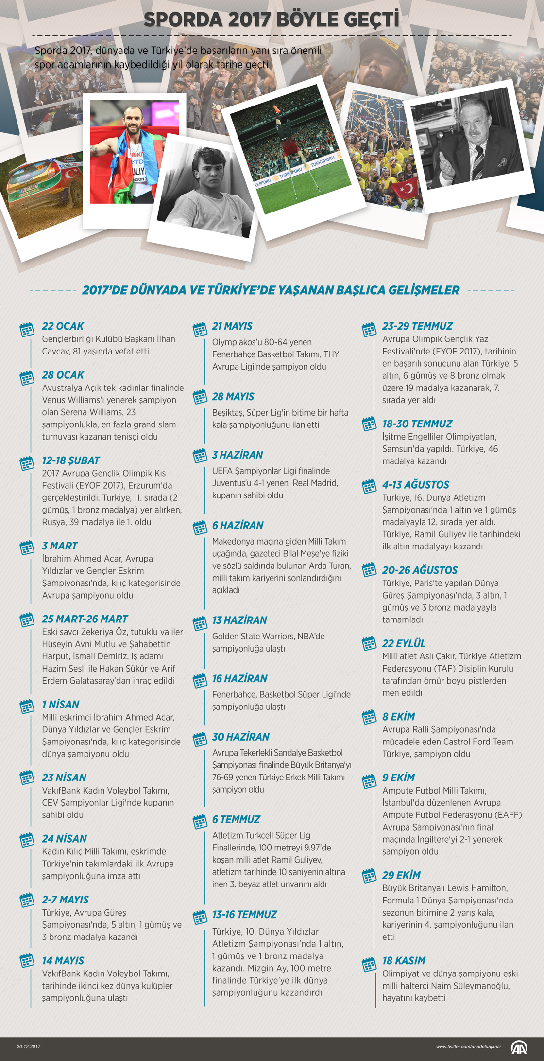 Sporda 2017, dünyada ve Türkiye'de başarıların yanı sıra önemli spor adamlarının kaybedildiği yıl olarak tarihe geçti. ( Kemal Delikmen - Anadolu Ajansı )