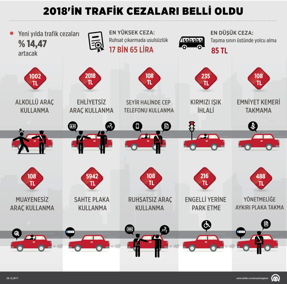 Trafik cezaları 2018'de, Maliye Bakanlığınca belirlenen yeniden değerleme oranına göre yüzde 14,47 zamlı olacak. ( Gözde Gültekinler - Anadolu Ajansı )