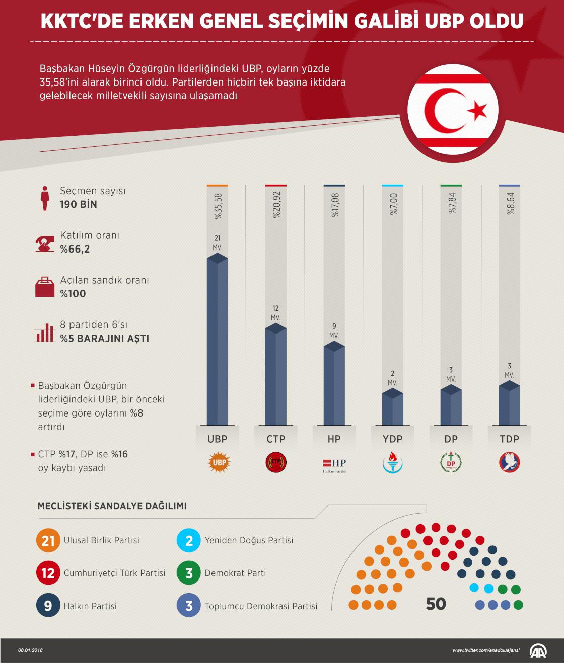 KKTC'de erken genel seçimin galibi UBP oldu