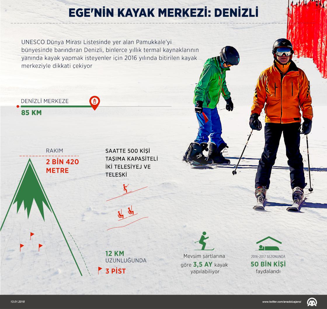 UNESCO Dünya Mirası Listesi'nde yer alan Pamukkale'yi bünyesinde barındıran Denizli, binlerce yıllık termal kaynaklarının yanında kayak yapmak isteyenler için de 2016 yılında bitirilen kayak merkeziyle dikkati çekiyor. ( Yasin Demirci - Anadolu Ajansı )