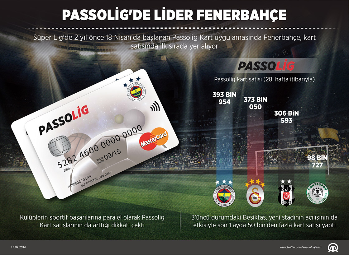 Spor Toto Süper Lig'de 2 yıl önce 18 Nisan'da başlanan Passolig uygulamasında Fenerbahçe, kart satışı sıralamasının ilk basamağında yer aldı. (Kemal Delikmen - Anadolu Ajansı)