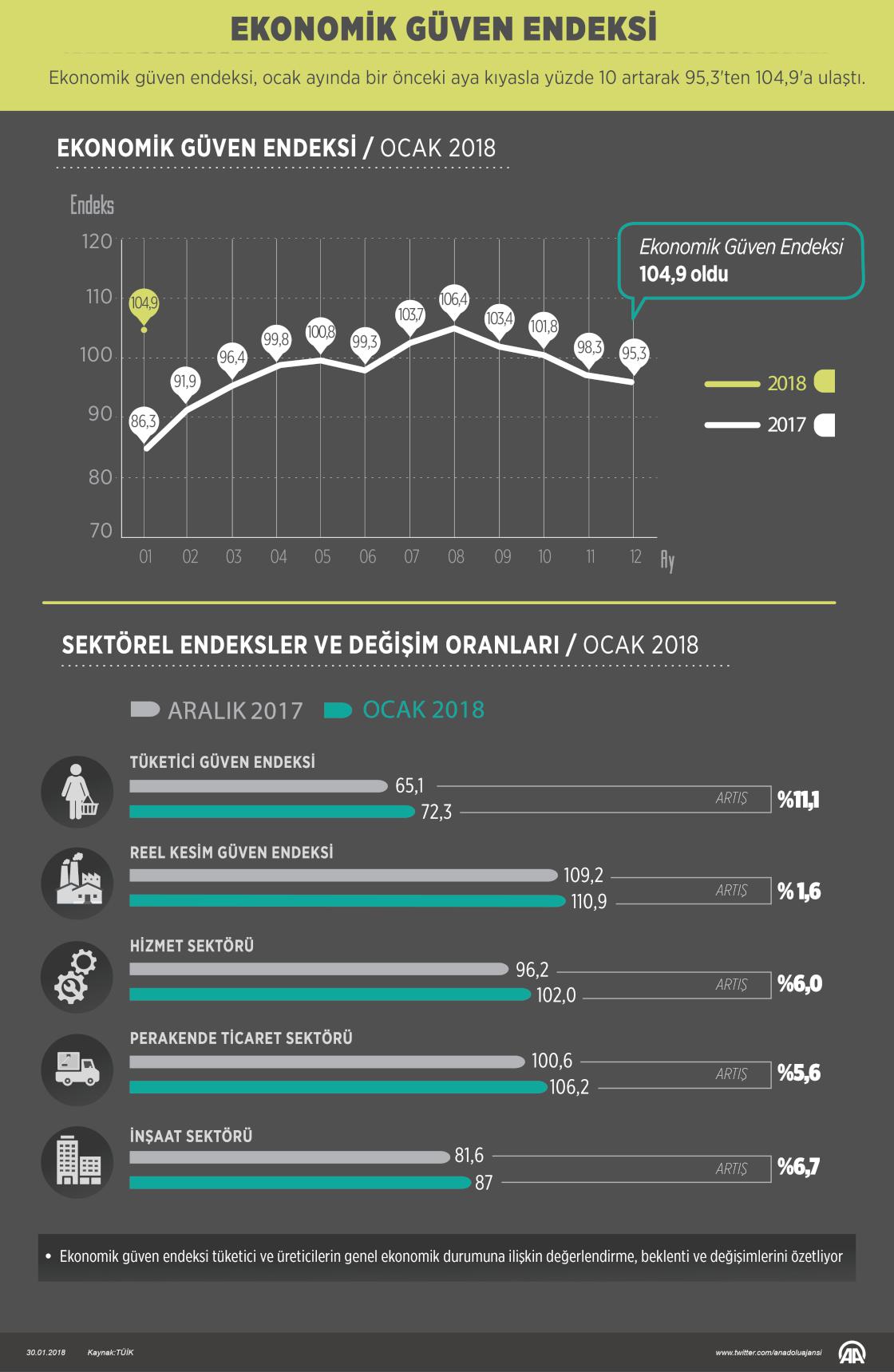 Ekonomik güven endeksi, ocak ayında bir önceki aya kıyasla yüzde 10 artarak 95,3'ten 104,9'a ulaştı. ( Yasin Demirci - Anadolu Ajansı )