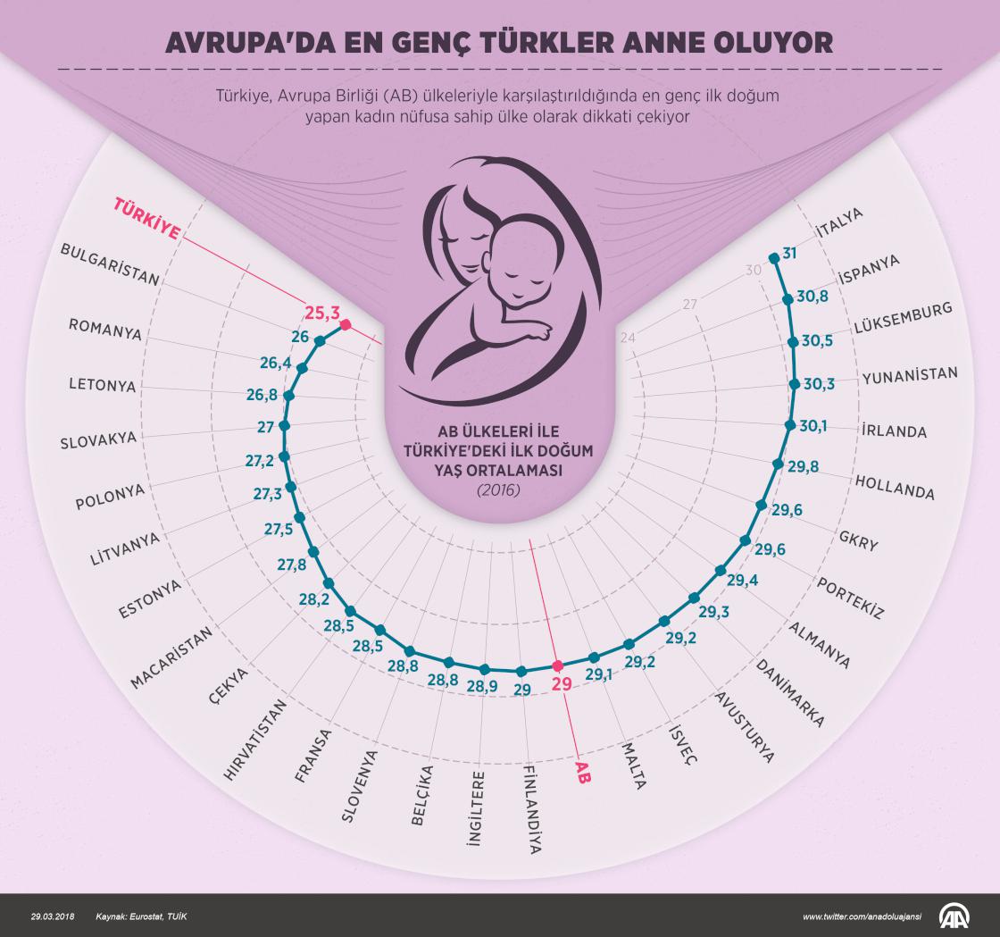 Türkiye, Avrupa Birliği (AB) ülkeleriyle karşılaştırıldığında en genç ilk doğum yapan kadın nüfusa sahip ülke olarak dikkati çekiyor. ( Murat Usubaliev - Anadolu Ajansı )