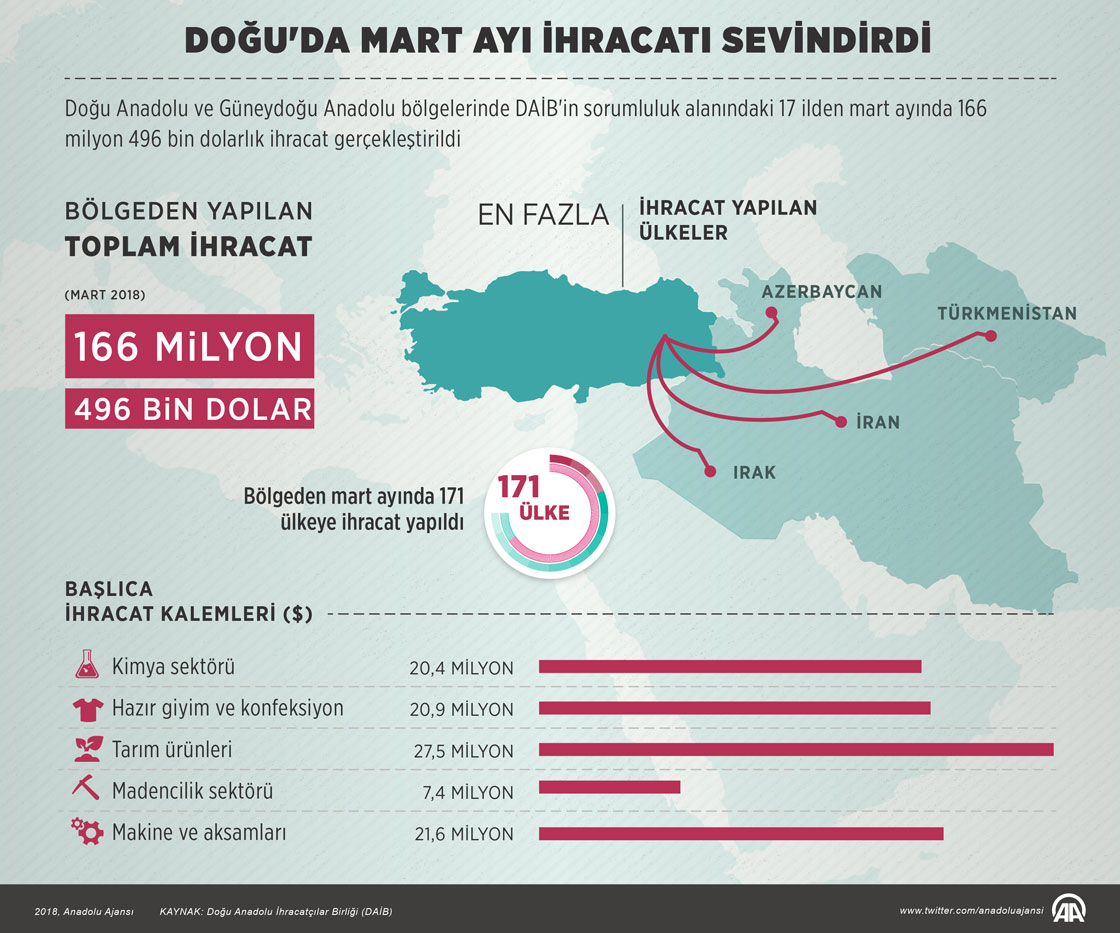 Doğu Anadolu İhracatçılar Birliğinin (DAİB) sorumluluk alanındaki 17 ilden mart ayında 166 milyon 496 bin dolarlık ihracat yapıldı. (Anadolu Ajansı - Muhammed Ali Yiğit)