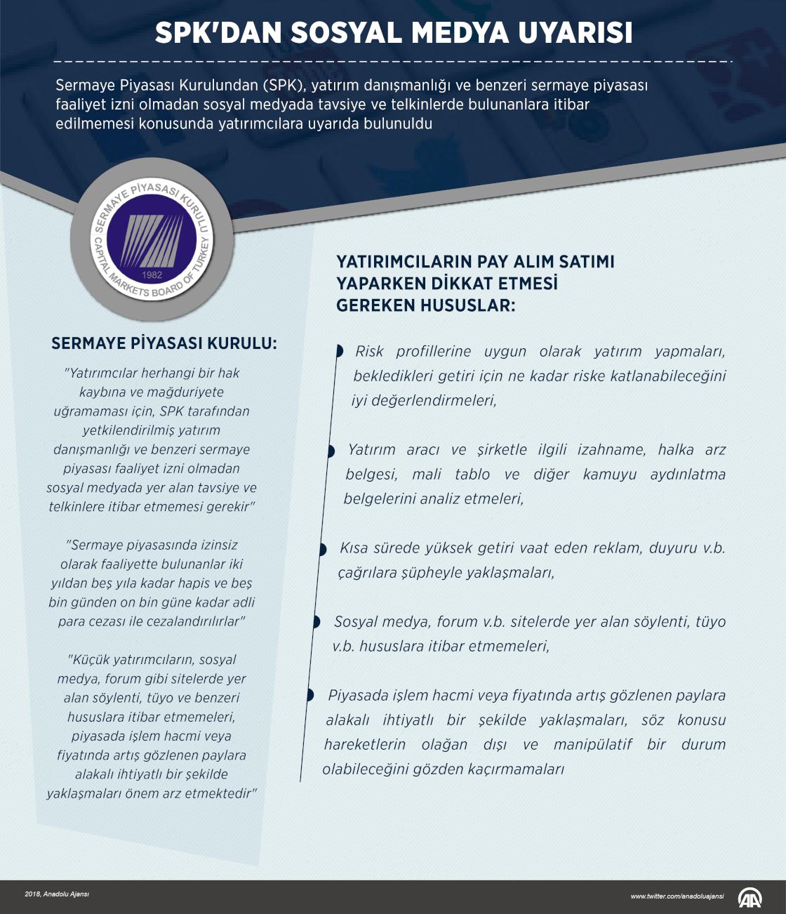 Sermaye Piyasası Kurulundan (SPK), yatırım danışmanlığı ve benzeri sermaye piyasası faaliyet izni olmadan sosyal medyada tavsiye ve telkinlerde bulunanlara itibar edilmemesi konusunda uyarıda bulunuldu. ( Kemal Delikmen - Anadolu Ajansı )