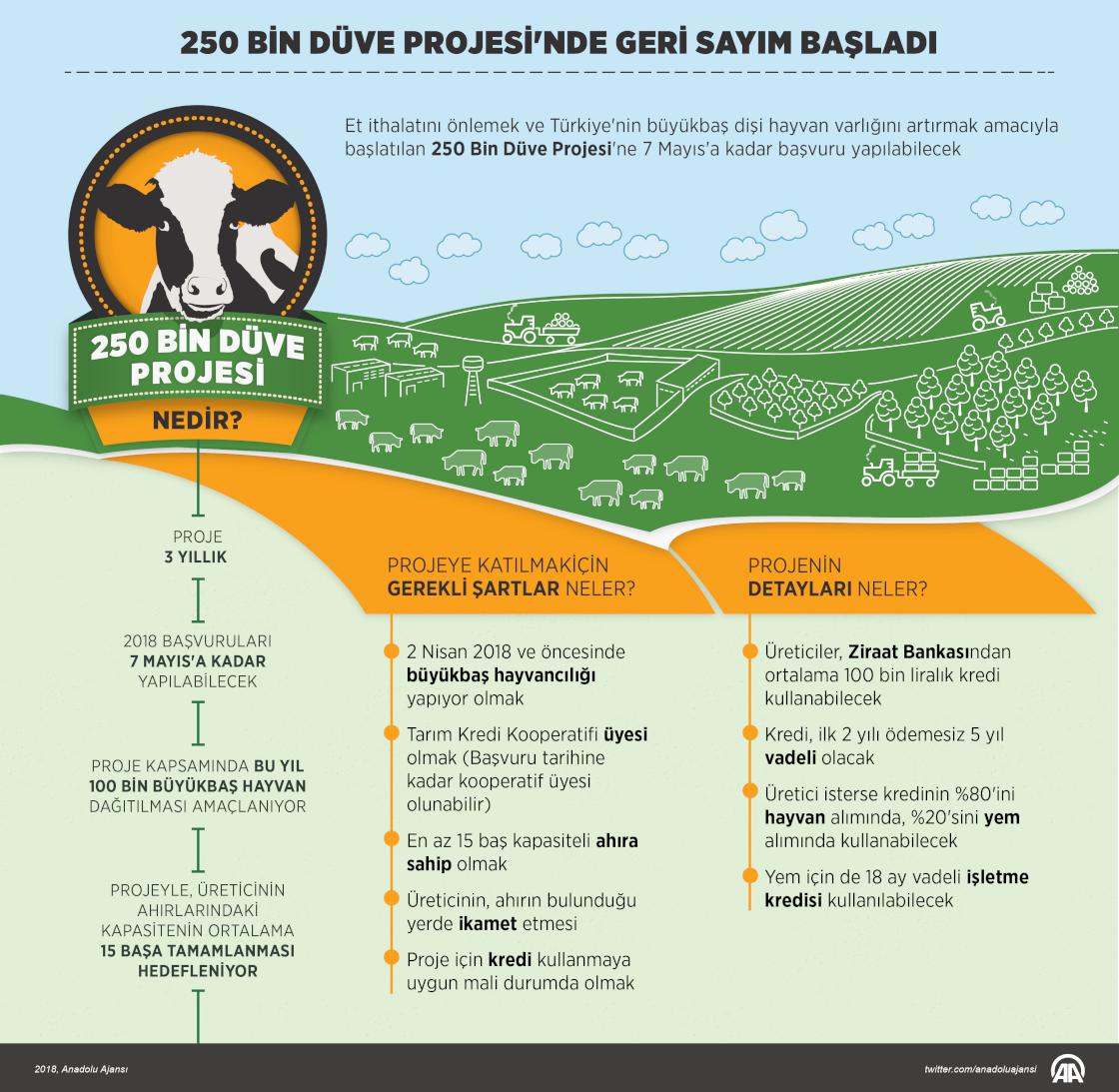Et ithalatını önlemek ve Türkiye'nin büyükbaş dişi hayvan varlığını artırmak amacıyla başlatılan 250 Bin Düve Projesi'nde üreticilerden 7 Mayıs'a kadar başvuru alınacak. ( Murat Usubaliev - Anadolu Ajansı )
