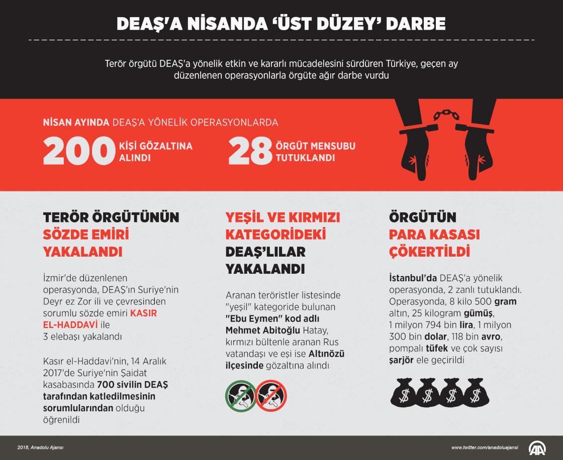 Terör örgütü DEAŞ'a yönelik etkin ve kararlı mücadelesini sürdüren Türkiye, geçen ay düzenlenen operasyonlarla örgüte ağır darbe vurdu. ( Murat Usubaliev - Anadolu Ajansı )