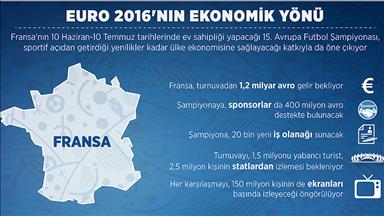 İlk defa 24 takımın katılacağı 2016 Avrupa Futbol Şampiyonası'nın (EURO 2016), turnuvaya 3. kez ev sahipliği yapacak Fransa'ya 1,2 milyar avro gelir sağlaması bekleniyor.09 Haziran 2016