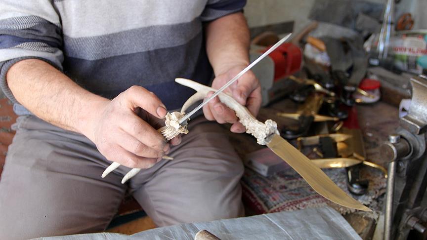 Sivas'ta 35 yıldır baba mesleğini sürdüren bıçak ustası İsmail Gölebatmaz, Sivas bıçağına geyik ve karaca boynuzuyla ayrı bir güzellik kazandırdıklarını söyledi.