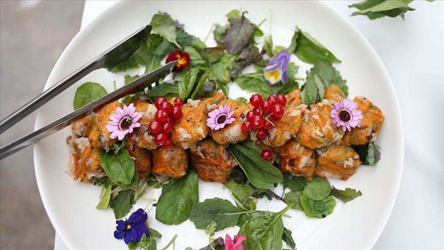 Aşçı Hamza Kalkan da ikram için hazırlanan yemekler ve kullanılan malzemeler hakkında konukları bilgilendirdi.