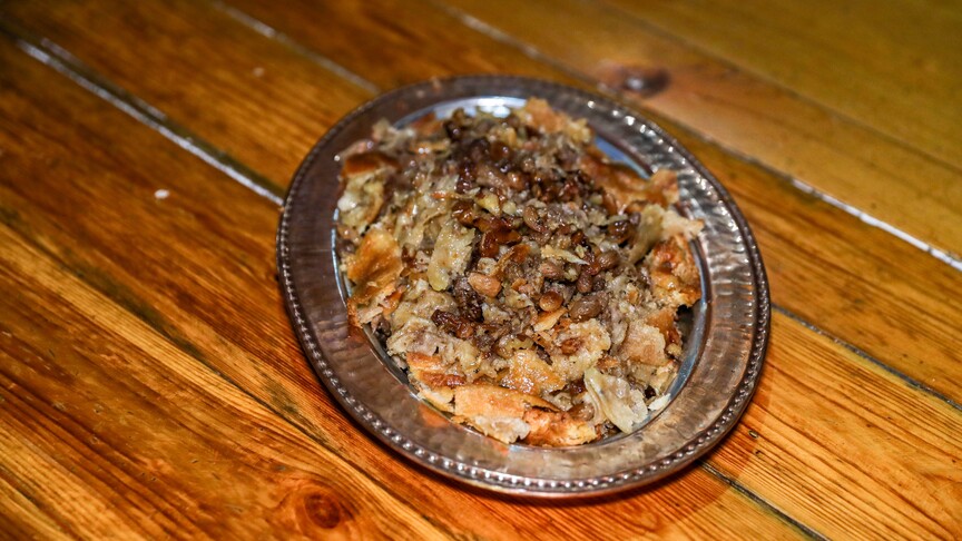 - İç harcı için bir kabın içerisine kavurma, ceviz içi, kuru üzüm, haşlanmış bulgur, kuru dut ve tuz eklenir. Malzemelerin iyi bir şekilde karıştırılması önemli.