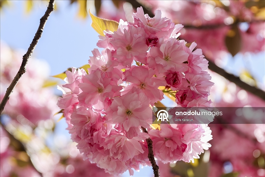 Baharın müjdecisi kabul edilen sakura ağaçları, İstanbul'da çiçek açtı. Baltalimanı Japon Bahçesi'nde pembenin en güzel tonlarını bünyesinde barındıran sakuralar da ziyaretçilerine ilkbaharın güzelliğini sunuyor. (Arife Karakum - Anadolu Ajansı)