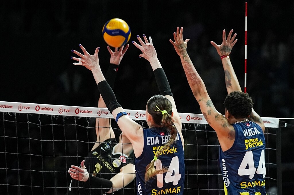 Vodafone Sultanlar Ligi play-off final serisi dördüncü maçında Fenerbahçe Medicana ile VakıfBank takımları Burhan Felek Vestel Voleybol Salonu'nda karşılaştı. Bir pozisyon sonrası VakıfBank oyuncuları sevinç yaşadı.