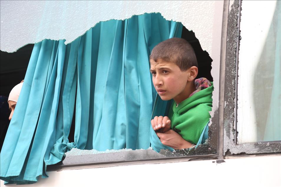 Beşşar Esed rejimi ve destekçilerinin abluka altında tuttuğu Doğu Guta'dan tahliye edilmek zorunda kalanları taşıyan beşinci konvoy, Suriye'nin Hama iline ulaştı. ( Enes Diyab - Anadolu Ajansı )Enes Diyab