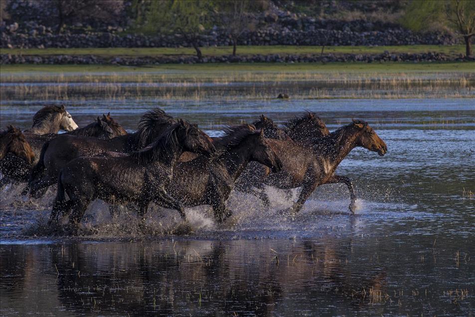 Yılkı atları fotoğrafçıların gözdesi oldu