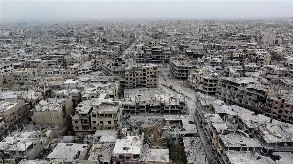 AA, Doğu Guta'nın Arbin ilçesini drone ile görüntüledi