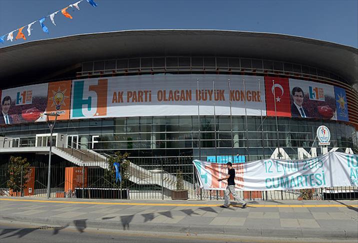 Davutoğlu, AK Parti 5. Olağan Büyük Kongresi'nin yapıldığı Ankara Arena Spor Salonu önünde toplanan partililere hitap ettikten sonra, kongre salonuna girdi.