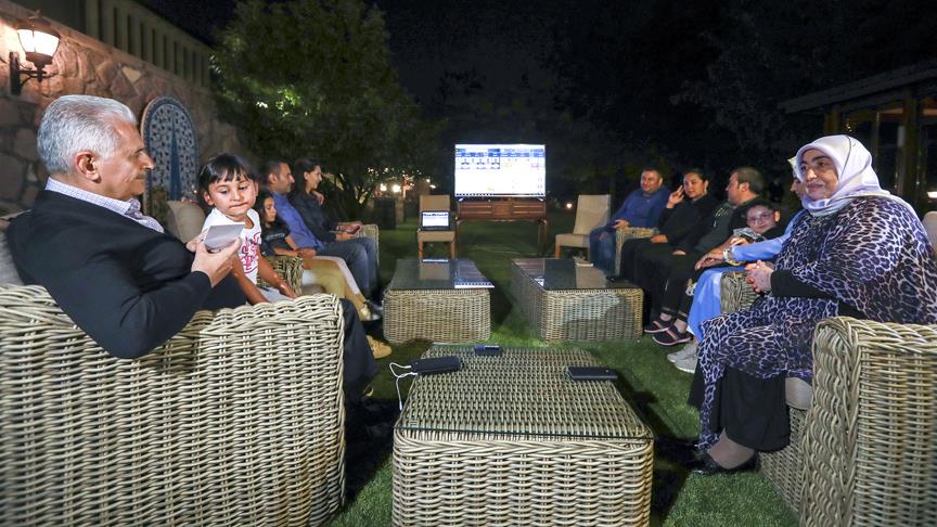 Sandık sonuçlarını Başbakanlık Resmi Konutu'nda kurulan ekranlardan takip eden Başbakan Yıldırım'a, ailesi ve yakın çalışma ekibi eşlik etti.
